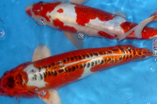 Da man schon 40- jährige Erfahrung mit der Karpfenzucht und -vermehrung hatte, wurden die ersten Japanischen Koi im Frühjahr 1995 über einen Deutschen Zwischenhändler (um horrende Summen) importiert. Die ausgewählten Prachtstücke (einige Sankes, Kohakus und Ogons alle ca. 30 cm groß) fühlten sich in unseren Teichanlagen sofort wohl und wuchsen im Laufe der Jahre auf eine Größe von ca.85 cm an.